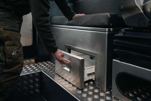 You will find a wide range of additional options, such as a refrigerator box, a heating cabinet for lunch boxes or a kitchenette equipped with a sink and cooking facilities.