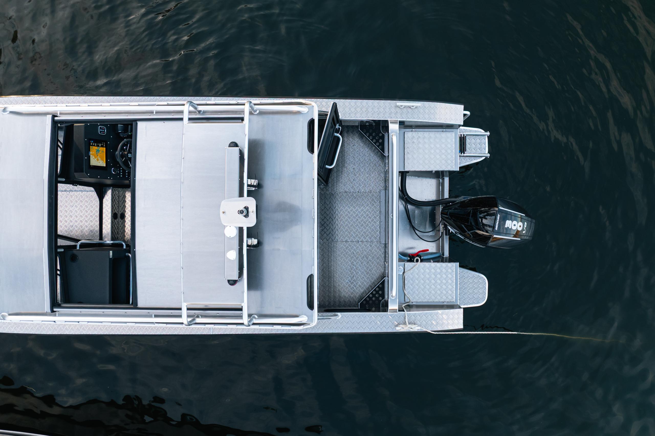 The work series of Alukin's aluminium boats are sturdy utility boats made for versatile boat life, combining business with pleasure. The foredeck is spacious and practical, with a 143 cm wide bow ramp.